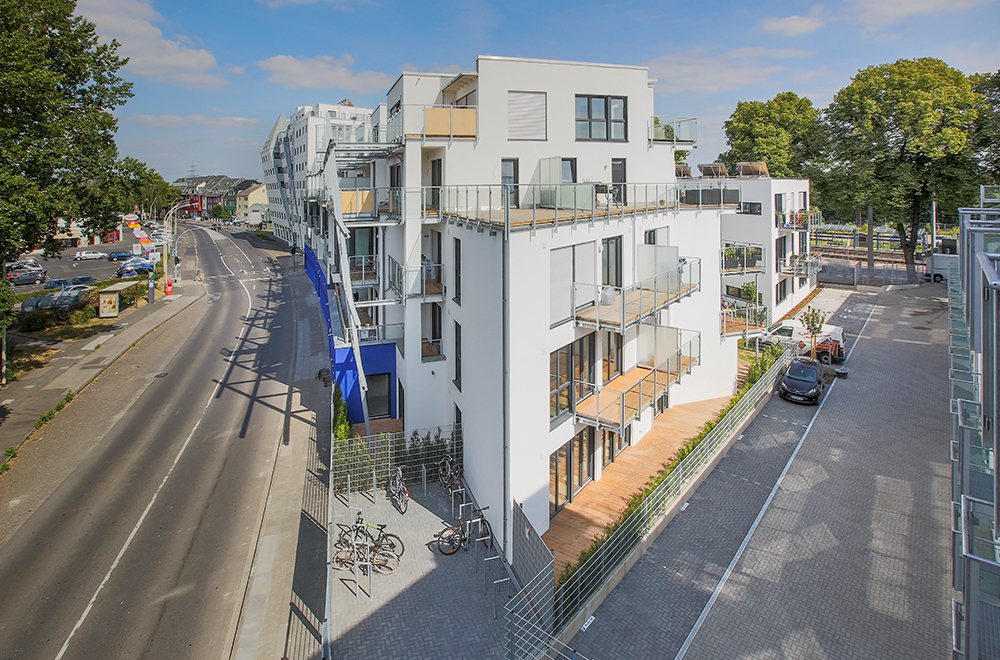 Das von Sinani GmbH realisierte Projekt beeindruckt mit moderner Architektur und vielseitiger Nutzung. Schräge Wände schaffen ein einzigartiges Raumgefühl, während markante Stahlbalkone mit Glasbrüstungen das Design prägen. Glas dominiert das Erscheinungsbild und sorgt für helle, offene Räume. Auch Gewerbeflächen profitieren von umlaufenden Fensterfronten, die jedes Geschäft hervorheben. Dieses Projekt vereint Ästhetik, Funktionalität und urbanen Wohnkomfort.