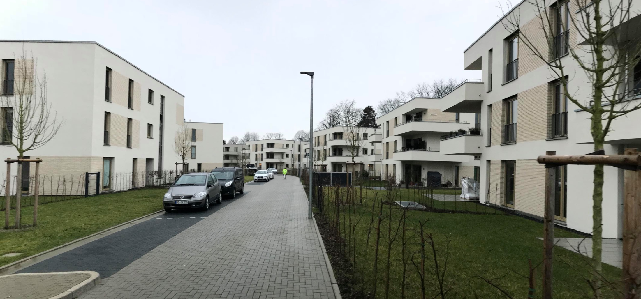 Das von Sinani GmbH realisierte Projekt umfasst moderne Wohngebäude mit mehreren Etagen, die durch ein minimalistisches Design und eine klare Ästhetik bestechen. Die Fassaden kombinieren hellen Beton, dekorative Paneele und Glasflächen, während geräumige Balkone privaten Außenraum bieten. Das Gelände ist von einem Metallzaun umgeben, mit neu angelegten Grünflächen und gepflasterten Wegen, die eine ordentliche und zugängliche Umgebung schaffen. Dieses Projekt vereint Funktionalität und modernes Design auf harmonische Weise.